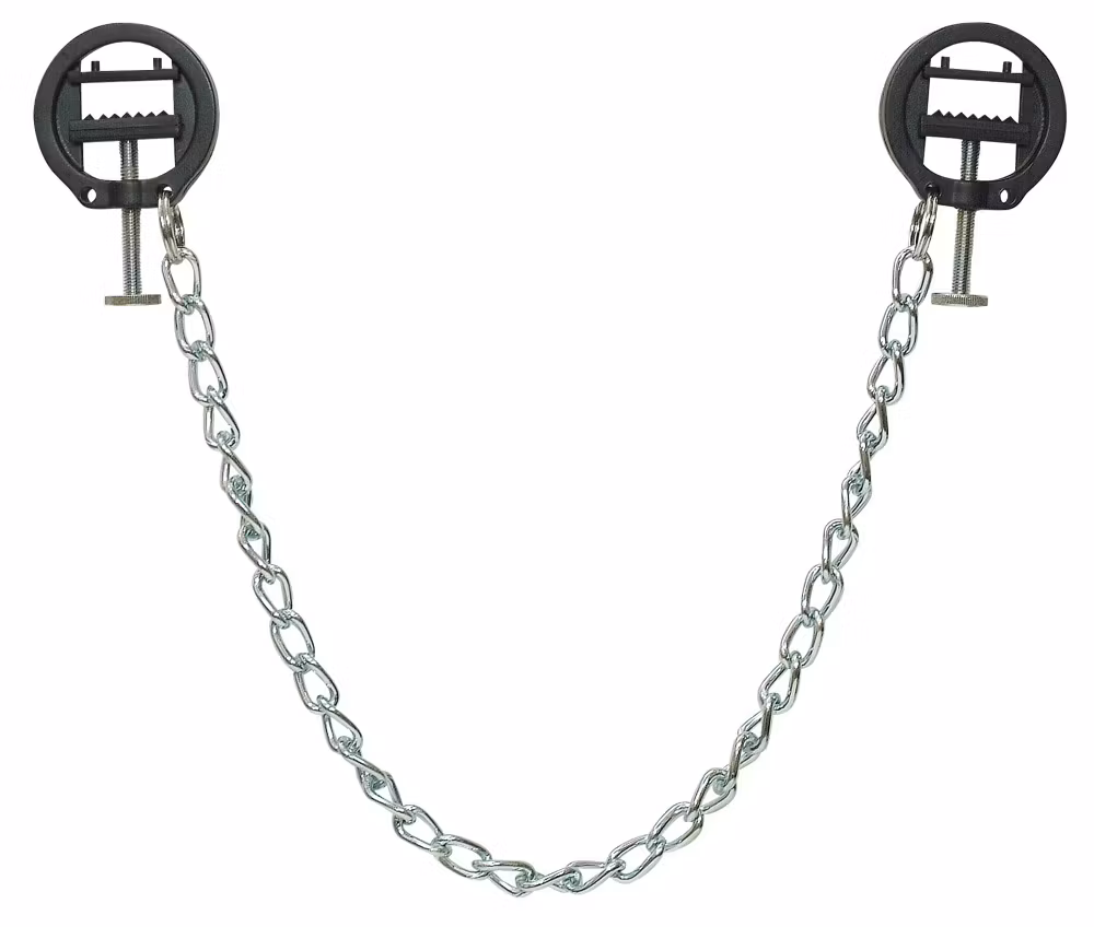 Runde brystklemmer med skrufunksjon for både han og henne! For en spinnede opplevelse og et opphissende syn når de bæres. Med disse 2 runde nippleskruklemmene kan man la den Spennede leken starte. For litt pirrende smerte kan man stramme skruene i den styrken man selv ønsker. Klemmene er forbundet med et svært lett metallkjede.