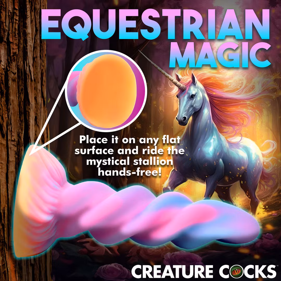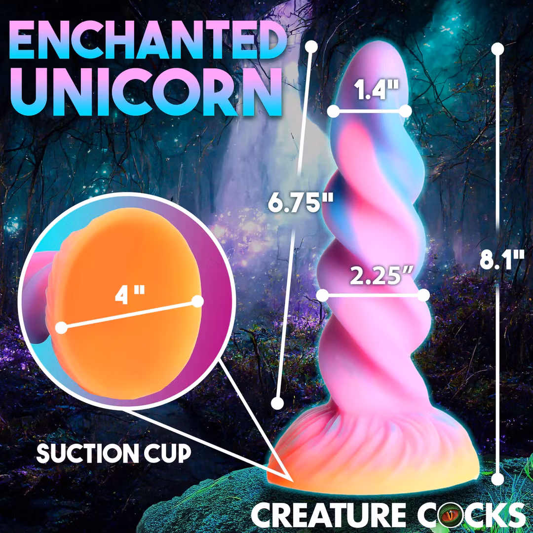 Denne fortryllende enhjørningsdildoen – kjent som Moon Rider – er ikke som andre sexleketøy. Med glødende enhjørningshorn, spiralformet skaft og et fargesprakende solutbrudd av rosa, blått, lilla og gult, er dette leketøyet skapt for deg som vil ha mer enn bare nytelse – du vil ha magi.
