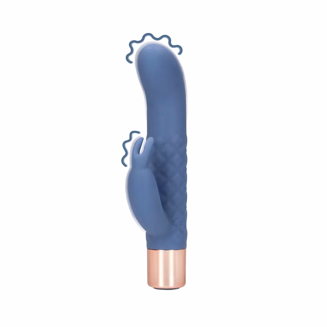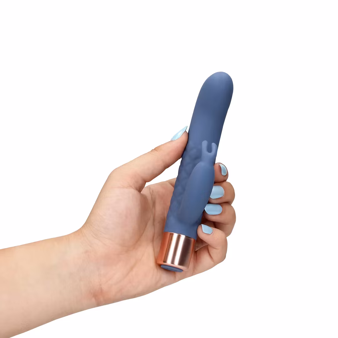 La deg forføre av Loveline Mini Rabbitvibrator-Blue Horizion, en kompakt og stilfull vibrator som er designet for å gi deg dobbel stimulering – samtidig G-punkt og klitorisstimulering. Denne søte vibratoren, i en nydelig støvete blå farge, kommer med en elegant rosegullbase, noe som gjør den både diskret og utrolig tiltalende. Den kompakte størrelsen gjør den ideell for reise, slik at du alltid har med deg en dose luksuriøs nytelse, uansett hvor du er.