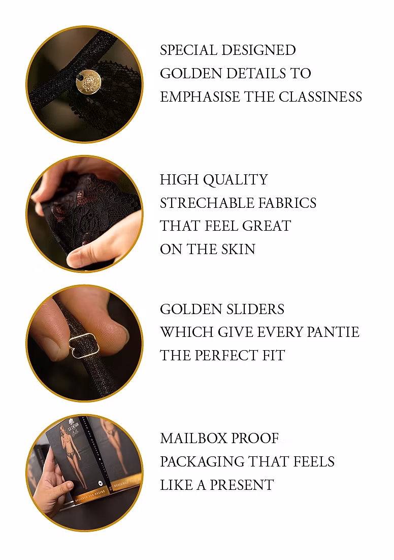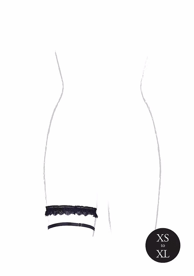 Dette strømpebåndet gir deg akkurat det litte ekstra og fremhever lårene dine på en feminin og lekker måte. Det unike med dette strømpebåndet er at det har et todelt uttrykk. Med et topp båndet i lekker blonde og et ekstra smalere ett i glatt elastisk bånd med gull detaljer, som kombinerer feminint med sexy på en perfekt måte. Materialet er svært tøyelig og med kan enkelt justeres ved hjelp av de lekker gull detaljene. Så uansett din form vil denne kunne tilpasses deg. Denne er perfekt og kombinere med en lekker truse, finn gjerne en i vårt utvalg i Truser og 2 delte sett.